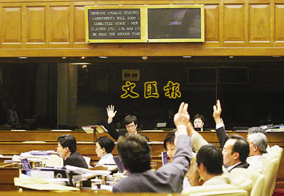 【本報訊】(記者 葉詠儀)經過連續兩天近11個小時的審議工作,立法會昨日傍晚終於三讀通過《2005年吸煙(公眾衛生)(修訂)》條例草案,將大部分公共場所列為禁煙區,並由明年1月1日開始逐步生效(見表)。對於被批評為「特首曾蔭權為向工商界選委拉票」而提出的設置吸煙房的建議,衛生福利及食物局局長周一嶽批評「拉票說」是「無稽之談」:「在這方面(禁煙)我比曾蔭權認識得更多!」又強調自己不會與任何政黨有親疏之別,亦毋須為任何人拉票。