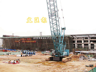 ■深港西部通道可望今年年底至07年初正式通車。「一地兩檢」料本月底獲全國人大常委會拍板通過。圖為即將落成的深港西部通道聯檢大樓。 資料圖片