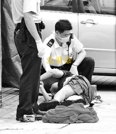 ■警員檢視跳橋的士司機屍體。
