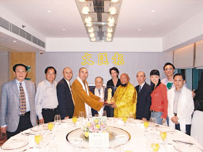 ■香港佛教文化產業創辦人莊世平、吳達鎔居士和名譽顧問寬運法師、黎日光上師宴請聯合國剛堅活佛,並了解聯合國的佛教和平活動。