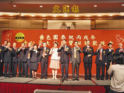 ■賓主在嗇色園慶祝85華誕聯歡晚會上祝酒。