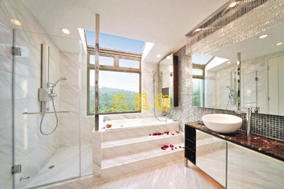 主人房浴室的觀星窗旁設典雅浴缸,讓戶主可盡情浸泡Spa香薰浸浴,同時觀賞漫天星光。