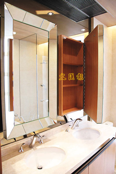 主人套房浴室的鏡子後特設櫃子擺放護膚用品呢,可見設計師的心思。