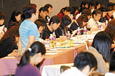 ■中央證券公司特別聘用逾千人於九龍灣國際展貿中心進行點票。 本報記者張偉民 攝