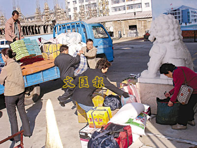 據了解,目前朝鮮人要來中國,需要辦理多道審批手續,且每人每年一般只能來華探親一次,所以一旦朝鮮親人能過來河這邊時,中國親人都會將一年要送的全部東西集中在一起,裝滿一個大貨車的車廂運到口岸,讓對岸的親人運回去。 ■本報記者葛沖、關莉吉林圖們20日電 本報直擊報道系列之二