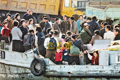 ■新義州的朝鮮人在鴨綠江的船上。 路透社