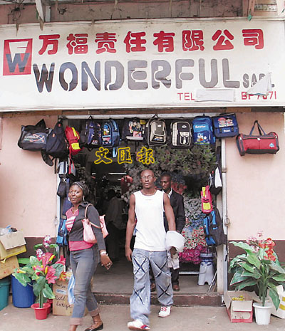 ■近年越來越多華人到非洲進行經貿活動,圖為非洲喀麥隆首都雅溫得,當地居民光顧一家中國商店。 資料圖片