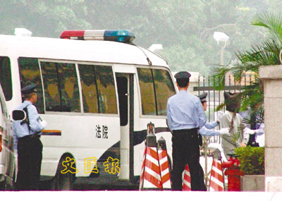 ■轟動一時的陸羽茶室槍殺富商案,昨於深圳開審。圖為疑兇被押上警車。 本報深圳辦傳真