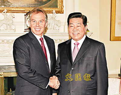 ■10月24日,正在英國進行正式友好訪問的全國政協主席賈慶林在倫敦唐寧街10號會見英國首相貝理雅。新華社