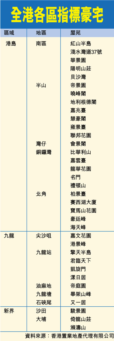 全港各區指標豪宅 (圖)