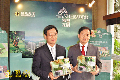 ■恆基謝偉銓(左)及林達民主持「豫豐花園」綠意悠悠記者會。 本報記者張偉民 攝