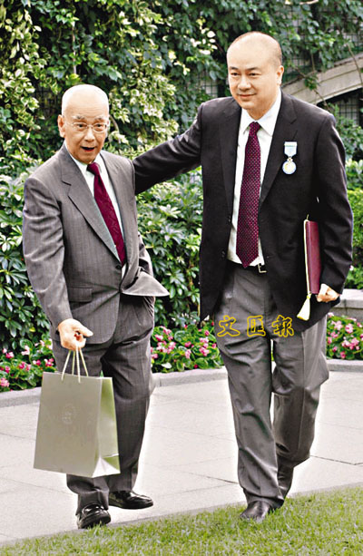 ■高志森(右)與老父出席授勳儀式。 本報記者潘達文 攝