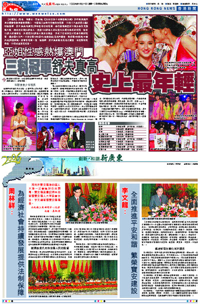 【本報訊】(記者 李慶全、許紹基)《2006亞洲小姐競選總決賽》於昨晚假澳門東亞運動會體育館隆重舉行,今屆首次由海外佳麗得到冠軍,只得十六歲的過江龍8號達蓮娜.舒夫真高(哈薩克)同時奪得亞姐冠軍、最佳儀態風度的大獎及最完美體態大獎,捧走現金獎50萬港元、價值138萬港元的紅寶石及鑽石構成的后冠,還有13萬元的跑車等,共超過200萬港元獎金及獎品,亦成了亞姐有史以來最年輕的冠軍,爆出個大冷門。只有亞軍18號孟玲(港澳特區)是熱門當選,與季軍4號韓燕(中國內地)同獲兩獎。而宣布冠軍一刻,達蓮娜.舒夫真高聽到是自己當選,也沒顯得很興奮,只保持著甜美笑容。