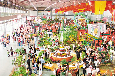 ■「花博會」盛況空前,南昌國際會展中心內人潮湧動。 本報記者梅柏林 攝