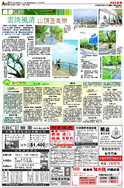 農曆九月初九重陽節,秋高氣爽,雲淡風清,登上太平山環顧,青翠簇擁下,俯瞰蔚藍維港與中環高樓相伴,山風送爽,飄送著陣陣樹香,自然美與繁華美混成一體。整個旅程由坐纜車到行山,都忍不住一次又一次說:「香港好靚呀!」