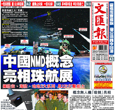 【本報珠海航展報道組30日電】隨著越來越多國家擁有核武器以及中遠程投擲手段,中國導彈防禦體系(NMD)能力如何,已為越來越多國人關注。中國航天科工集團在珠海航展上首次顯露導彈防禦體系(NMD)概念,包括進行反偵察、抗干擾、二次打擊等手段,更通過參展近20種導彈,包括防空、海防、地地三大系列,形象地展現了中國導彈武器系統實施全面、有效防禦的全過程,顯示了中國導彈武器系統保衛我國領空、領海、領土的能力和水平。