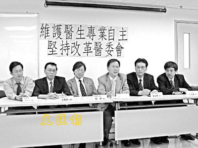 ■立法會議員郭家麒(右三)醫生要求改革醫委會,維護醫生的自主權。 實習記者呂雪如 攝