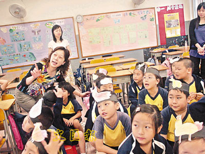 ■交流教師孫紅(左)在西貢崇真天主教小學上「圖書教學」示範課。本報南京傳真