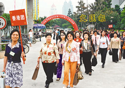 ■香港婦女代表團一行25人參加閩省第十屆婦代會,代表們正在步入會場。本報特約通訊員曹健 攝