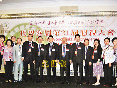 ■曾智明等嘉應商會代表團成員於懇親大會歡迎晚宴上合影留念。