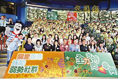 【本報訊】東華三院日前假海洋公園威威劇場舉行「齊心扶弱服務計劃」開展禮,為今年推出的4項扶弱計劃掀起序幕,當日邀得香港賽馬會、花旗集團及和記黃埔有限公司的義工協助帶領逾300名東華屬下服務受眾,包括長者、弱能人士及低收入家庭受惠者暢遊海洋公園。