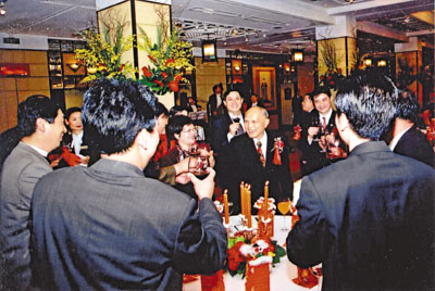 ■在當年白天鵝賓館二十周年紀念酒會上,霍英東向賓客敬酒。 白天鵝賓館提供