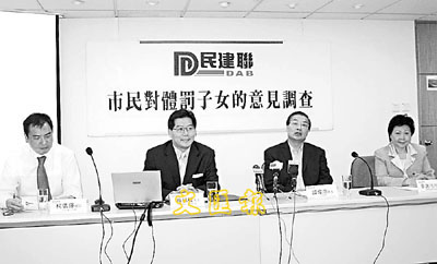 民建聯於上月中訪問1,317名市民,了解市民對體罰子女的意見。結果發現,本港體罰情況並不嚴重,有63%受訪家長指,子女十分頑皮或做錯事時,會向他解釋錯處,27.5%表示「會鬧佢」,只有5%表示會打子女。54.7%受訪者認為,體罰會破壞父母與子女的關係,57.6%受訪者認為體罰會影響子女的身心成長,但51.9%受訪者不贊成立法禁止市民對子女作出體罰。