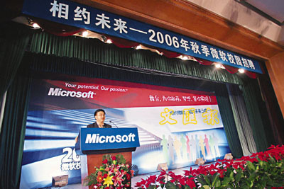他又稱,未來半年內將率先招請500人,一半為有工作經驗的在職人士,另一半是應屆畢業生。招請重點雖在內地高校,但他笑稱:「海外優秀的學生只要願意到中國,願意吃中國菜,認同中國文化,我們都歡迎!」他強調,招聘名額不會按地區指定分配,聘請的標準完全是看他是否認同微軟的文化,以及是否符合微軟要求的專業素質。