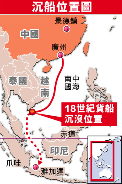 該批古舊瓷器包括精美茶具、瓷盒、啤酒杯和猴形有柄大口水壼。瓷器上都打上了清雍正年的印記,顯示載貨木船是在1723年至1736年期間,沉沒在南中國海底的,而船上失火可能是沉船的肇因。蘇富比要員利諾爾表示:「儘管長埋海底280年,但瓷器的固有質素保存得出奇地好。」 ■《泰晤士報》