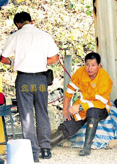 ■一名消防員於撲救大欖山火時受傷,由救護員包紮傷口。