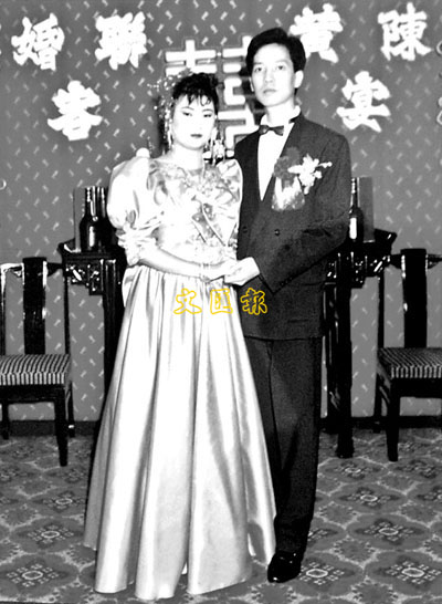 ■相擁自殺夫婦的結婚照。