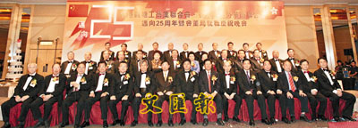 ■賓主在觀塘工商聯邁向25周年誌慶暨就職典禮上大合影。 本報記者高仲明 攝