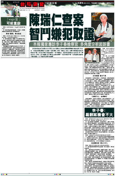¡@¡i¥»³ø¯S¬£°OªÌ¤ýµ½«i¥x¥_5¤é¹q¡j¦b¥x¥_³¯·ç¤¯À˹î©x´N°ê°È¾÷n¶Oªº°»¿ìµ²ªG¤½§G¤§«á¡A¥»³ø°OªÌ¿W®a±M³X¤F¥xÆW²Ä¤@¦ì´±¶Ç³ê¡u¨ã¦³¡yÁ`²Î¡z¨¥÷¡vªº³¯¤ô«ó¨ì®x§@ÃÒªºÀ˹î©x§õ¤l¬K¡A¸Õ±q¦h¨¤«×¤ÀªR°_¶D³ø§i¡C§õ¤l¬K«ü¥X¡A³o¥÷³ø§i²M²M¥Õ¥Õ¦a§i¶D¤HÌ¡u«ó¬Ã¦@¥Ç¡v¡C¦P®É¡A§õ¤l¬KÁÙ¤¶²Ð¤F³¯·ç¤¯¦b¬d®×´Á¶¡¡A¥©§®»P¶û¥Ç°«´¼¡A±q¦ÓÁ×¶}¦UºØ¬Fªv¤z¹wªº¹Lµ{¡C¥H¤U¬O³X°Ý¥Dn¤º®eºKn¡G