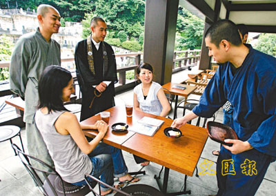 年僅24歲的僧人松本啟信(音)是佛教界其中一名改革先鋒,試圖引進一些企業管理學理論於其主理的光明寺。光明寺位於東京中部,松本啟信進行大膽嘗試,在寺內開設神谷町露天咖啡座,吸引年輕一代前去享受可口的咖啡和美味的甜品,以至安坐在空氣清新的環境談天說地。