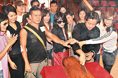 【本報訊】(記者 許紹基)鄭裕玲、陳法拉、黃德斌、葉翠翠及楊秀惠等昨天下午出席了《萬千星輝賀台慶》的拜神儀式,其中黃德斌接受電視台的訪問時舉起了本星期五台慶頒獎禮的獎座,似乎信心十足。鄭裕玲已試穿過台慶當晚會穿的禮服,她當晚會穿兩套衣服,其中一套是紅色的晚裝,她說:「當晚會用的首飾都已經試晒,係一大抽鑽石,閃到爆的那種。」