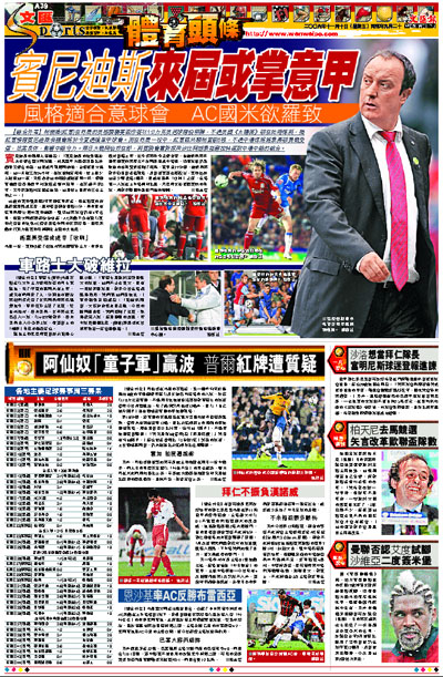 46歲的賓帥雖連續2年率領紅軍棒盃,但在聯賽的表現卻總是難成王者,現時落後榜首曼聯11分,早前更有紅軍高層公開向賓帥施壓。雖然他與球會仍有4年合同,但意大利媒體卻紛紛透露,AC米蘭下季有意以賓帥代替目前執教AC遭逢連場失利的安察洛堤,國際米蘭亦打算力邀賓帥填補萌生去意的文仙尼。