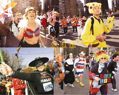 發福劍客梭羅、中年比卡超、德國彩旗爆炸頭…… 他們不是為補祝萬聖節而盛裝到會,而是為參加每年ING紐約市馬拉松的前戲 — 洲際航空公司友誼競跑(Continental Airlines International Friendship Run)。如此悉心打扮兼付出體力,諸國競步健兒力求爭奪完成該項賽事的至高榮譽—免費早餐乙份!