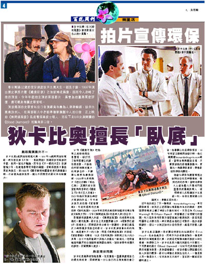 昨日剛滿32歲的里安納度狄卡比奧天生一副孩子臉,1997年演出歷史票房片霸《鐵達尼號》之後被捧成偶像,因而令人忽略了他的演技,今年年底他主演的兩部影片,將會為他贏得高度評價,還可媲美梅麗史翠普呢。