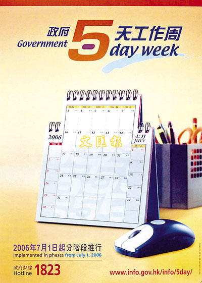 ■政府5天工作周的宣傳海報。5天工作周已於2006年7月1日開始全面實施。
