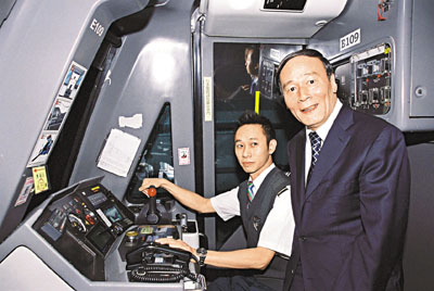 王岐山與副市長陸昊、水務局局長、交通委主任、應急辦主任、政府研究室副主任等北京市政府官員一行約10人,昨午4時35分抵達地鐵香港站參觀。