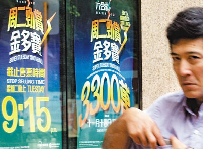 【本報訊】今天舉行的六合彩「周二勁賞金多寶」攪珠,獎金高達2,000萬元。馬會估計若有幸運兒一票獨中,獎金可能高達3,300萬元。為方便市民投注,馬會各項投注服務將於今天延長售票時間至晚上9時15分。