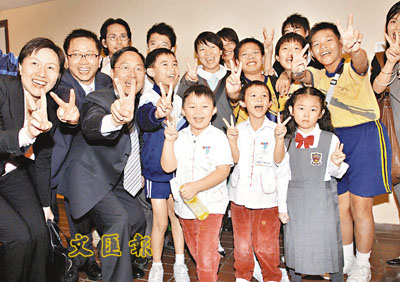 ■維園年宵檔競投,幼稚園學生也來參加,落力宣傳,並呼籲現場記者年宵來光顧他們的攤檔。
