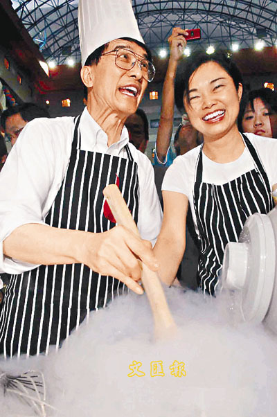 ■朱經武(左)以自創技術製作雪糕,以饗賓客。