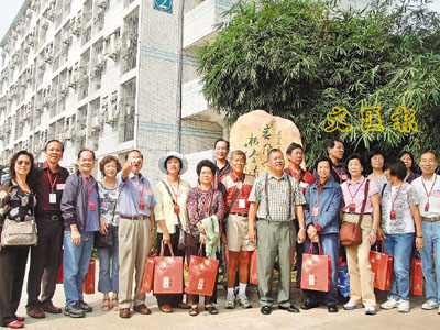 【本報珠三角新聞中心記者熊君慧、周國平、通訊員劉亞敏、劉芳容深圳電】曾被稱譽為深港兩地最高學府的深圳南頭中學,最近迎來100年校慶。南頭中學(香港)校友會組成300人的龐大海外團,專程出席母校的慶典。曾擔任香港迦密學校校長、今年88歲的鄭元是香港團中年齡最大的校友,今次更與其學生黃寶琦在50多年後喜相逢。