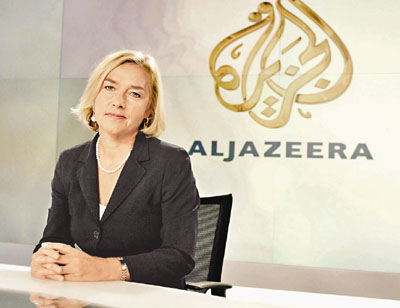 卡塔爾半島電視台在本港時間昨晚8時起啟播英語頻道,並獲67歲的英國著名電視節目主持人弗羅斯特加盟。目前英語頻道在吉隆坡、倫敦、華盛頓及多哈設有四個全球播放中心。弗羅斯特明日將主持「弗羅斯特看世界」節目,他表示歡迎英國首相貝理雅成為節目首批嘉賓之一。圖為半島電視台倫敦中心負責人休.菲利普斯。 文、圖:法新社/路透社