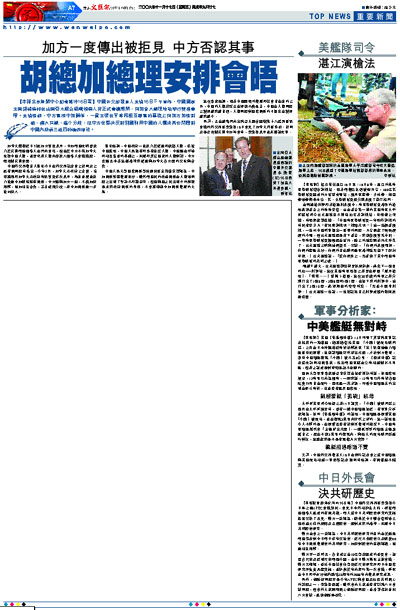 另訊,正在越南河內出席亞太經合組織第十八屆部長級會議的外交部長李肇星16日會見了加拿大外長麥凱。被問及是否拒絕安排中加峰會時,李肇星表示並未聽說此事。