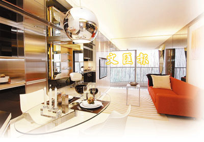 客廳佈置得很現代化,周圍以鏡面設計,令空間感大增,而且燈罩也採用鏡子包著,遠望也不知是燈呢﹗望著這個燈罩,很有時代感,像是走進了一間充滿科幻的屋子。