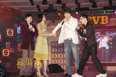 【本報訊】(記者 許紹基)無線前晚在尖沙咀一酒店舉行「星光匯聚大派對」,各出席的藝員均施盡渾身解數娛賓,其中以蒙嘉慧(Yoyo)煮「伊麵」、湯盈盈扮蔡依林及陳錦鴻和袁彌明則扮劉家昌、甄珍演唱《在雨中》最為有趣。