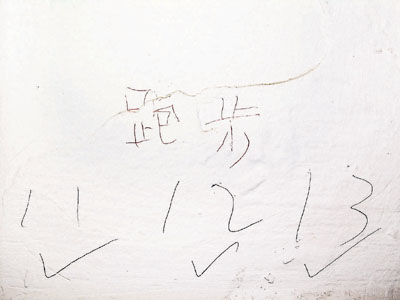 ■非常父親的住所門口,留有訓練兒子跑步「練功」的記錄。