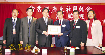 【本報訊】(記者 鄭群)香港廣東社團總會日前於會所歡迎以河南省統戰部副部長孟令峰率領的河省海外聯誼會赴港澳學習考察團,林光如副主席代表余國春主席對客人的到訪表示熱烈歡迎。賓主雙方就共同關心的豫港兩地事務舉行親切座談,大家希望繼續保持密切的聯繫,為加強豫港兩地的交流合作,為促進兩地社會經濟發展而努力!